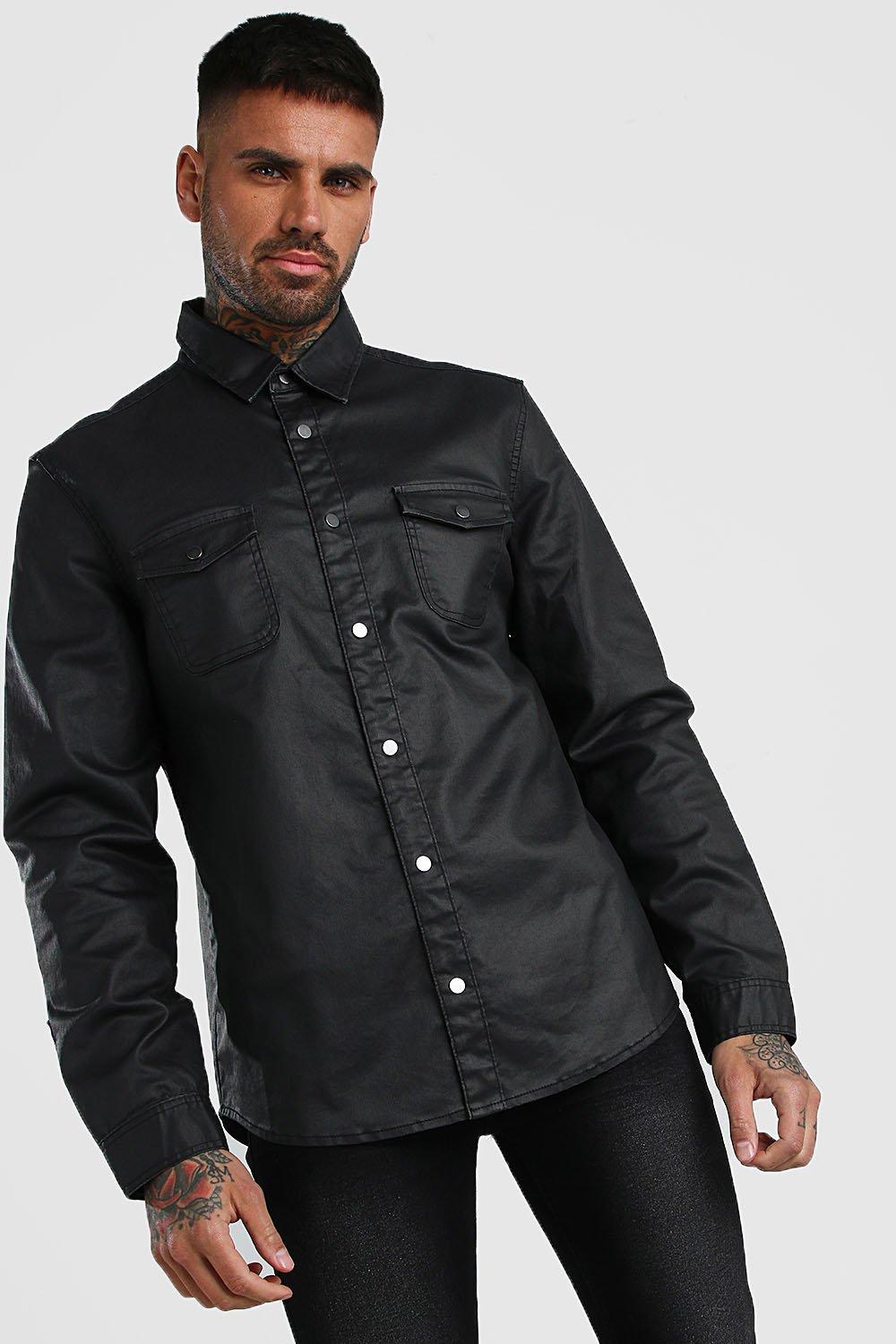 Men's PU Coated Denim Shirt | Boohoo UK