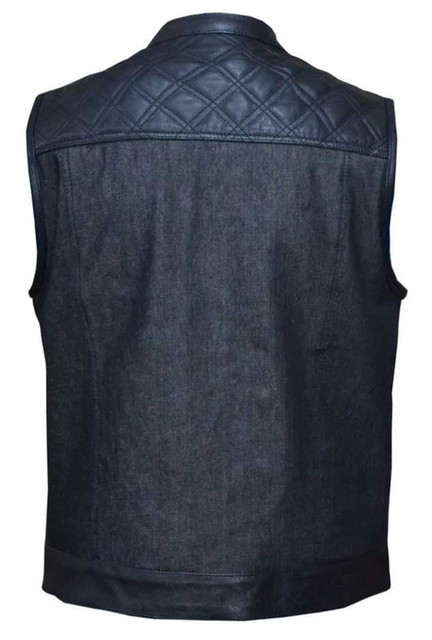 UNIK Men's Denim \u0026 Cowhide Leather Club Motorcycle Vest w/ Paisley Lining - Wisconsin Harley-Davidson