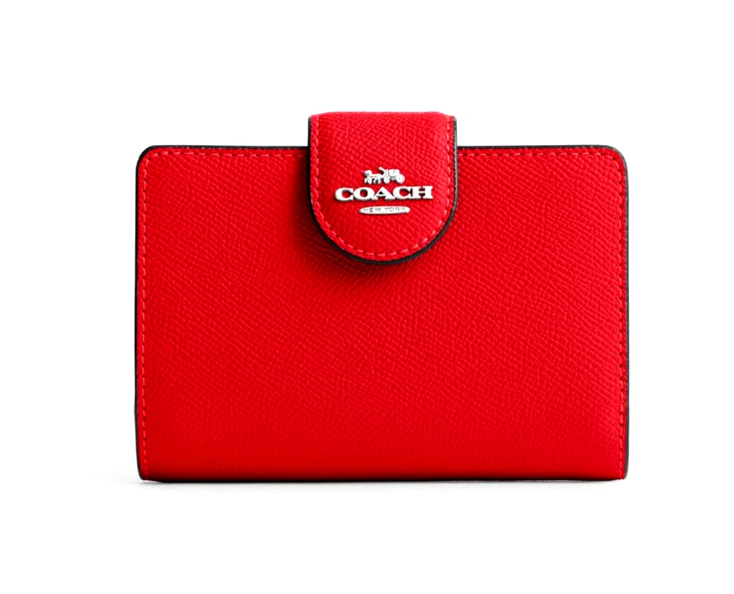 NWT COACH 6390 Medium Corner Zip Leather Wallet Bright Poppy Red NEW?NIP | eBay