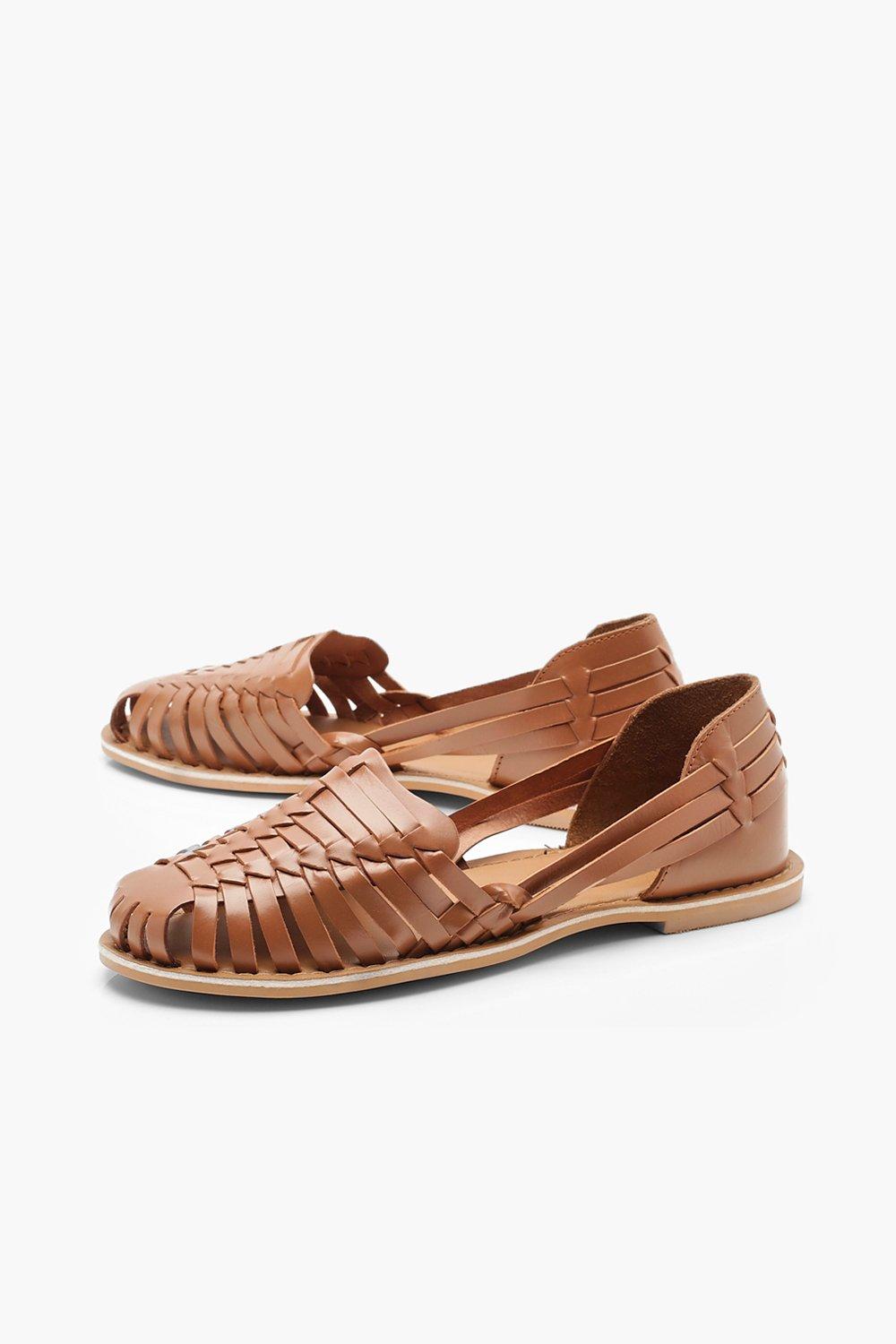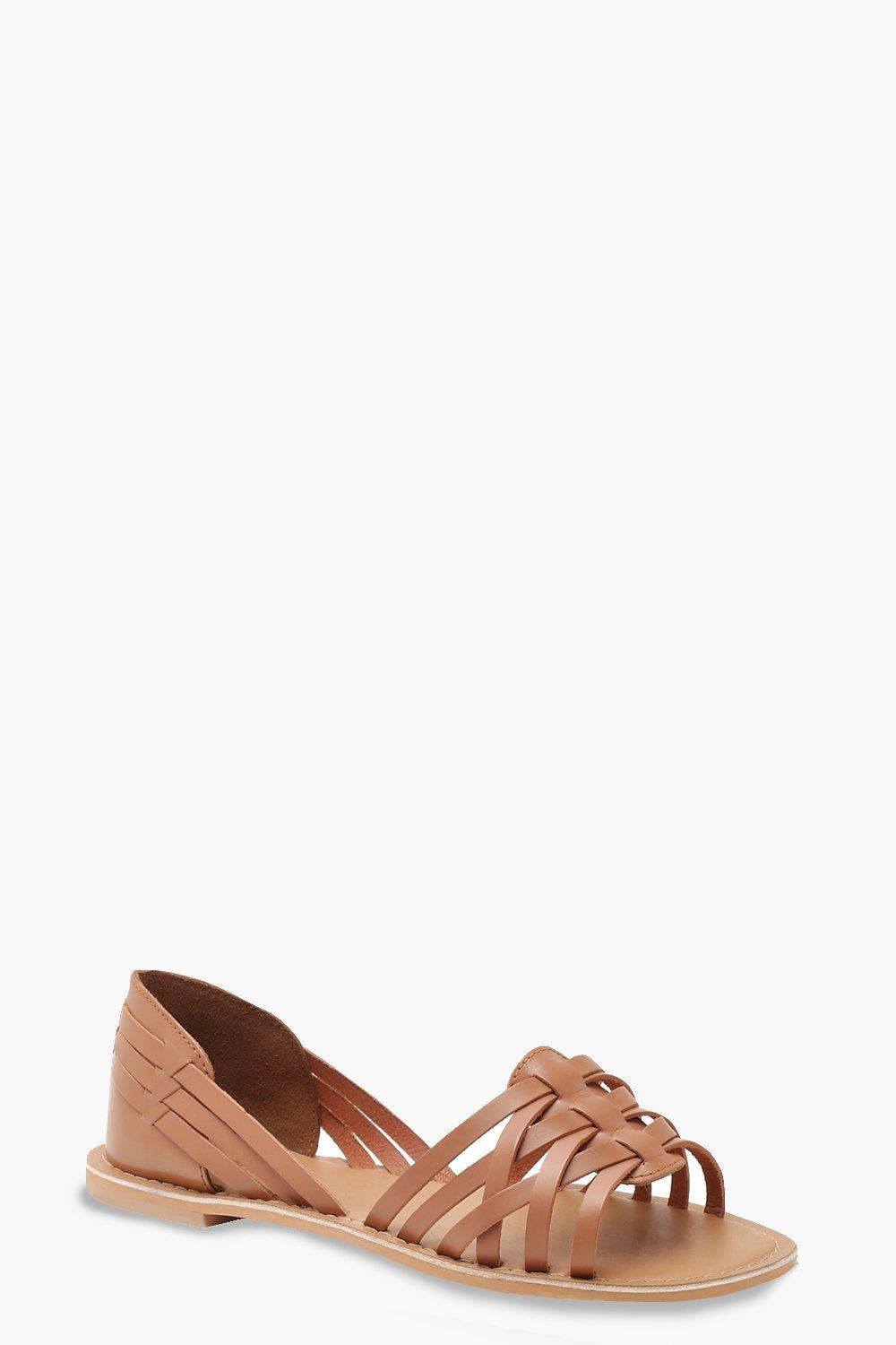 boohoo Wide Width Leather Woven Ballets - Brown - Size 5