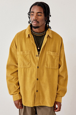 DavidMunnerlynCloset Men's Corduroy Shirt Long Sleeve Yellow Casual Shirt Jacket
