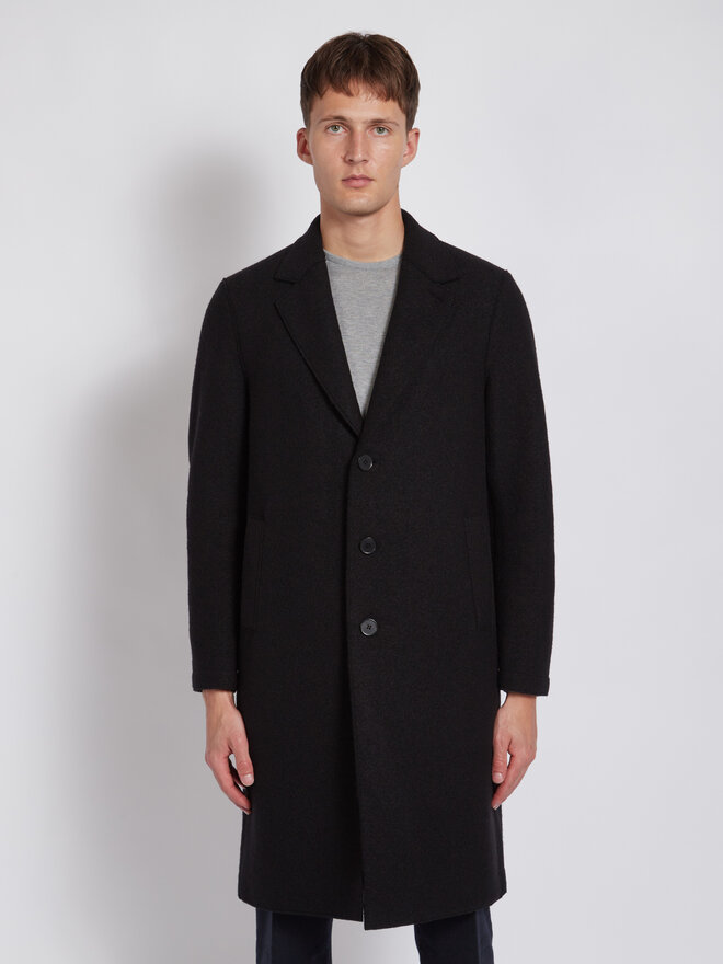 Harris Wharf London: Black Boiled Wool Coat | Men's Designer Clothes | MICHEL BRISSON