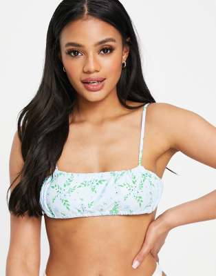 Missguided ruched bikini top in blue