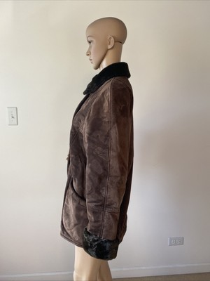 Gallery Brown Pig Split Suede Genuine Leather Coat Jacket Faux Fur Trim Lining M | eBay